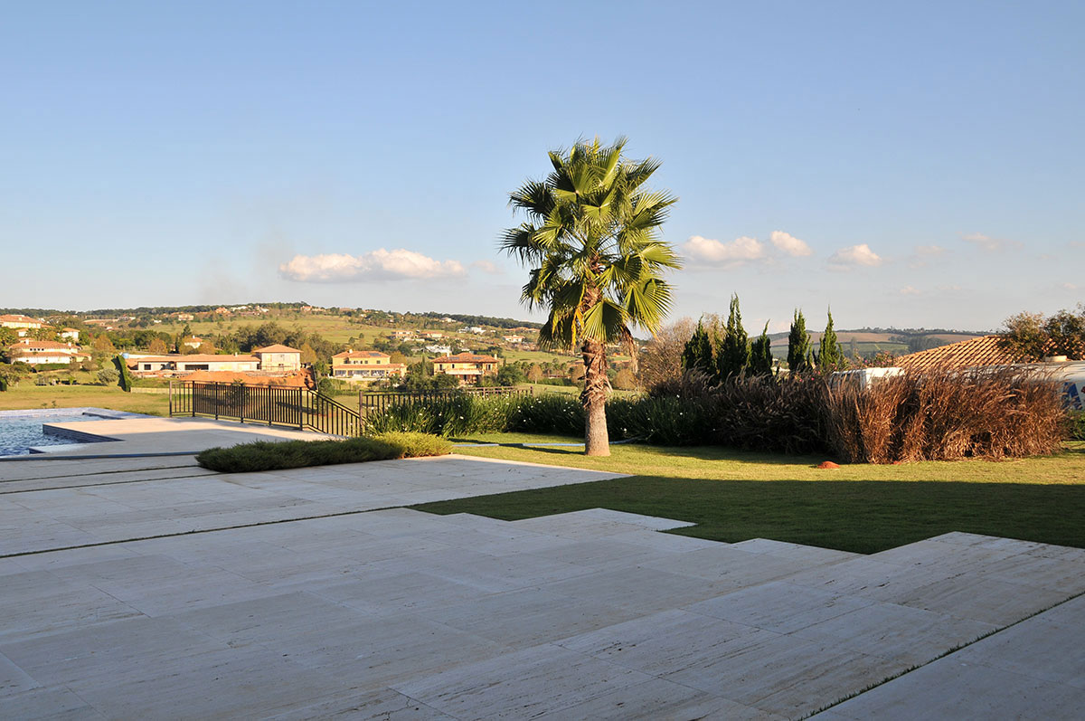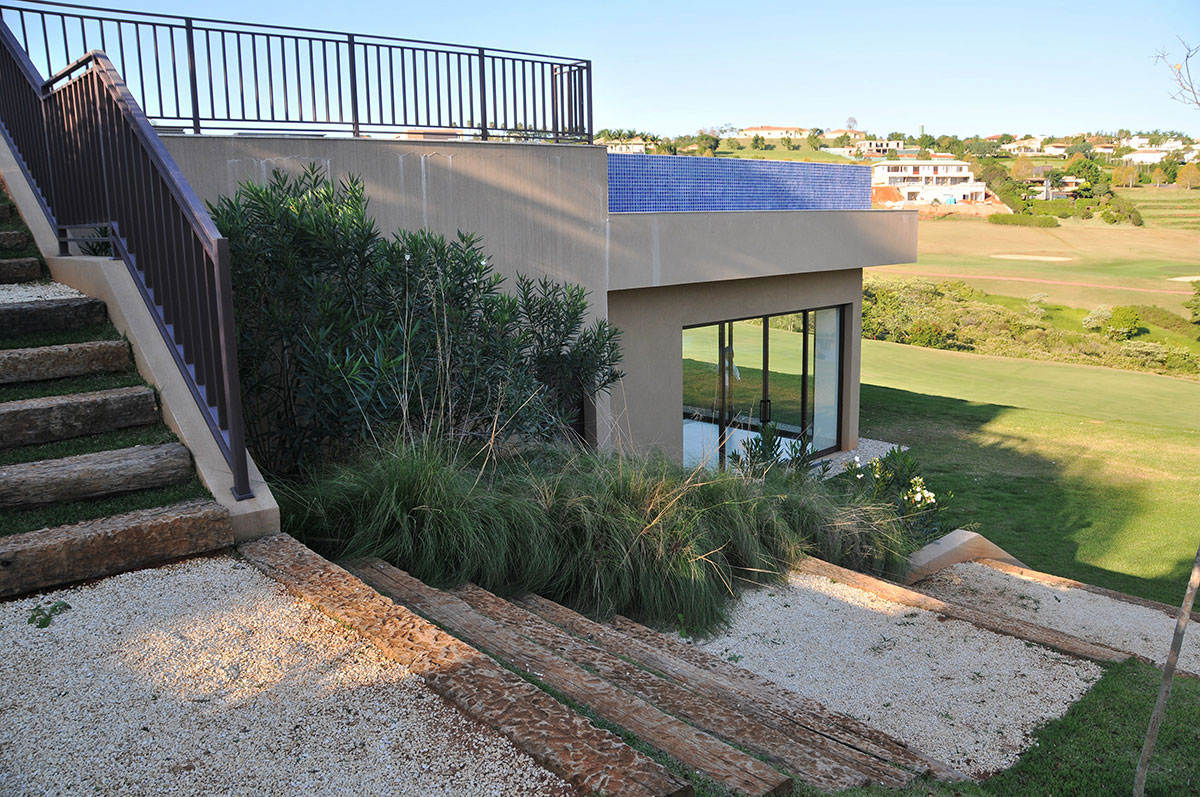 • Fonte da Fachada: Também, criada por Débora Aguiar uma belíssima fonte na fachada da casa com queda de água para os dois lados, um charme!Localização: A melhor do condomínio, na região mais valorizada. “Dentro do Campo de Golf”