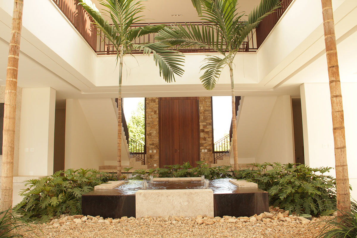 • Salas: Enorme praça italiana com fonte, jardins e palmeiras naturais atingindo o pé direito duplo. Exclusivamente criada pela Arquiteta Débora Aguiar, a praça e seus jardins envolvem o Living, Sala de Jantar e Home Theater, com luminosidade natural – teto Zenital de vidro, proporcionando aos ambientes claridade e bem estar.• Sala Íntima: Enorme sala intima no piso superior.