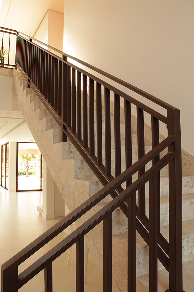 • Hall de Entrada: Duas maravilhosas escadas de acesso ao piso superior formando uma enorme galeria com pé direito duplo. Mais duas escadas de serviços para o piso superior e para a área de serviços.